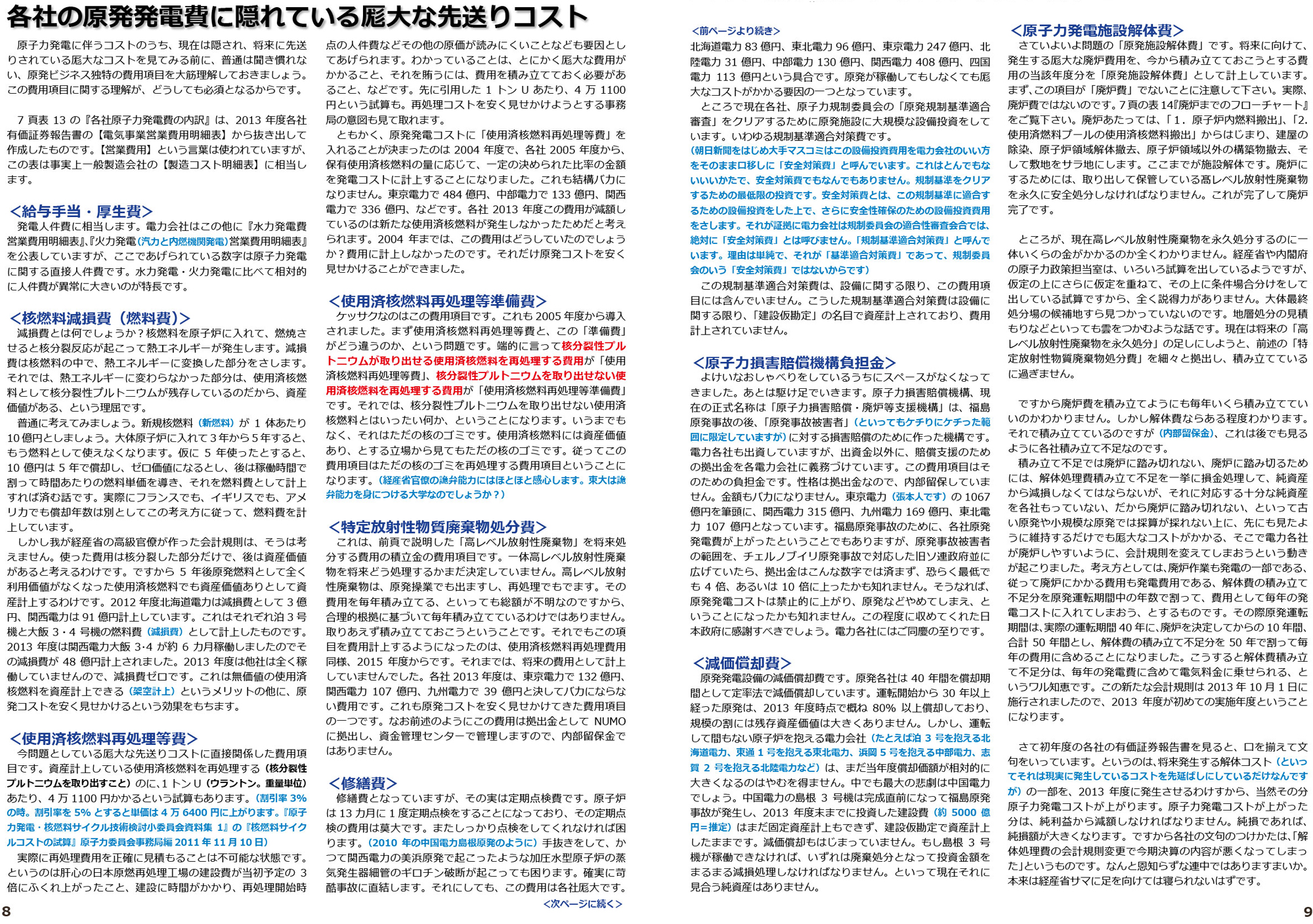 <特定放射性物質廃棄物処分費>の項で、この費用項目計上を「2015年度」から実施としていましたが、これは2005年度の誤植です。