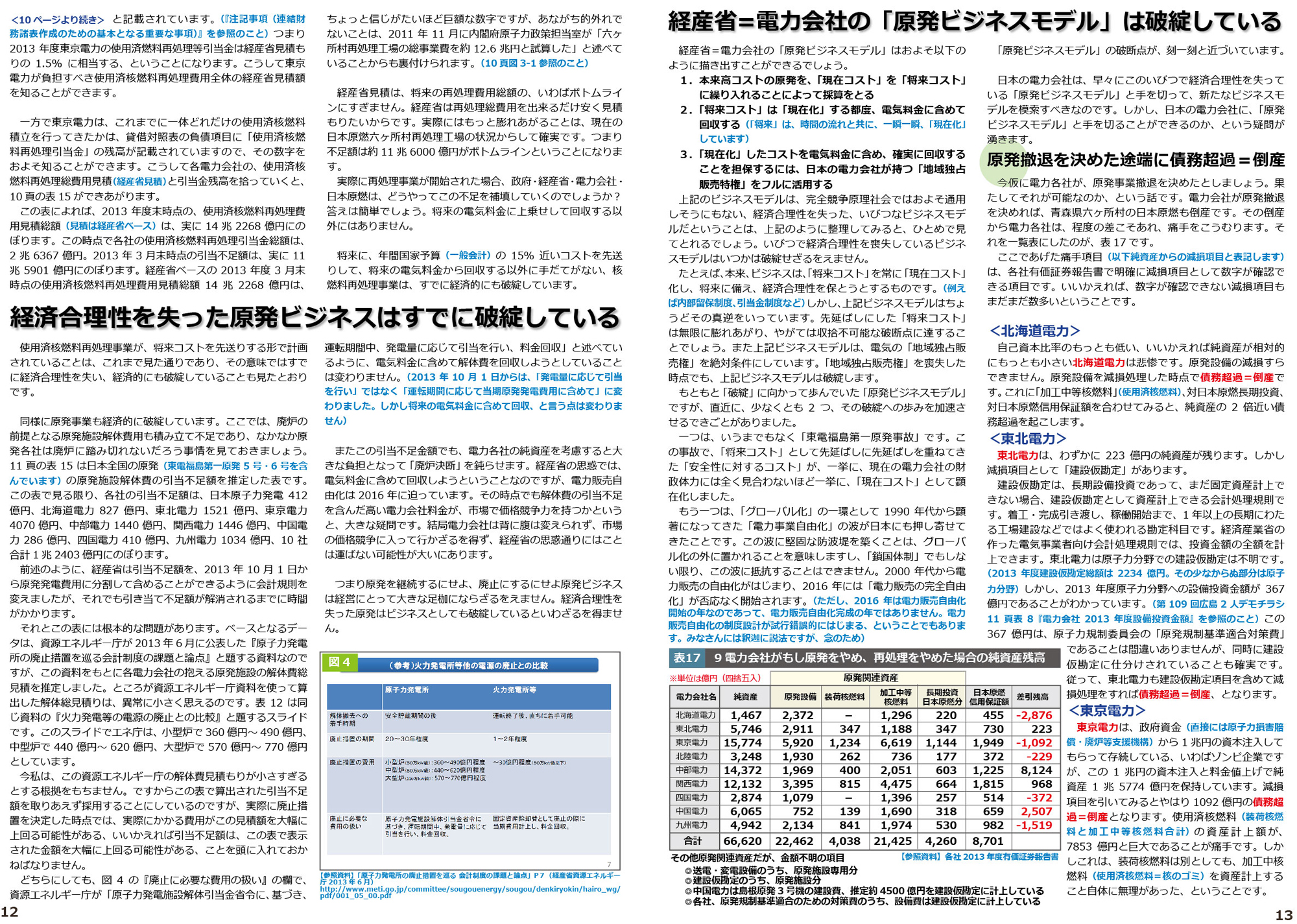 表▼9電力会社がもし原発をやめ、再処理をやめた場合の純資産残高