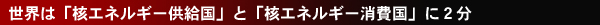 広汎な核技術と経験をもつ、いわゆる「西側先進国」と核エネルギーの平和利用が緊急の課題であるが、全く核技術をもたず、「西側先進国」から購入し、たとえば原子力発電所を丸ごと購入し(ターン・キー方式)、核燃料から廃棄物の処分、また運営・保守まで「西側先進国」に丸投げし、単に核エネルギーを利用するだけの「核エネルギー消費国」に二分されることになる。